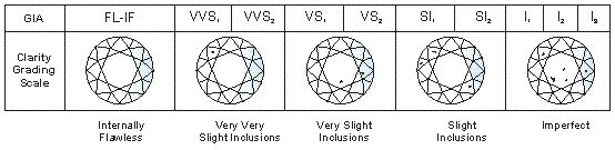 A diamond's clarity rating is determined by the number, size, type and location of inclusions under 10 x magnifications. The Gemmological Institute of America (GIA), the authority in diamond certification, has developed a professional scale to determine different clarity grades.