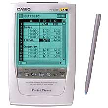 Display: 160x160 pixels memory-capacity: 4MB Maincomponent: LSI Power consumption: 0,3 Watt Power supply: two Mikro-alkaline batteries (Type: AAA / LR03 (AM4) Battery lifetime: Between 80 and 160 hours, depending on the usage of the backlight Auto-power-off-time: Adjustable - 1, 3 or 6 minutes Acceptable temperature range 0-40 degrees Centigrade (32-104 degrees Fahrenheit) Dimensions: Folded out: 13,8 (height) x 81,5 (width) x 125 (depth) mm /0,54 (H) x 3,20 (W) x 4,92 (D) inches Folded together: 15,6 (H) x 81,5 (W) x 128 (D) mm /0,61 (H) x 3,20 (W) x 5,03 (D) inches Weight: 145g incl Batteries AddIn It is possible to run extra programmes on the PV. Main usage modes: Pocketsheet, scheduler (schedule, ToDo, reminder), contacts, memo, expense manager, currency converter, quickmemo, tools (clock, calendar, calculator) and games Saving of datas: saving and viewing of pocketsheet-, schedule-, ToDo-, reminder-, contacts-, memo-, expense-, quickmemo-data; calendar-view; secret saving-area; editing all these datas; memory status display. Clock: Worldtime, schedule-alarm, ToDo-alarm, reminder-alarm, daily alarm, clock accuracy under normal temperatures: (+/-) 3 seconds per day. Calculations: 12-digit-arithmetical calculations; arithmetic constants (+/-/x/divided by); independant memory, percent-calculations, square-root; 24-digit approximation, other mix-calculations. |